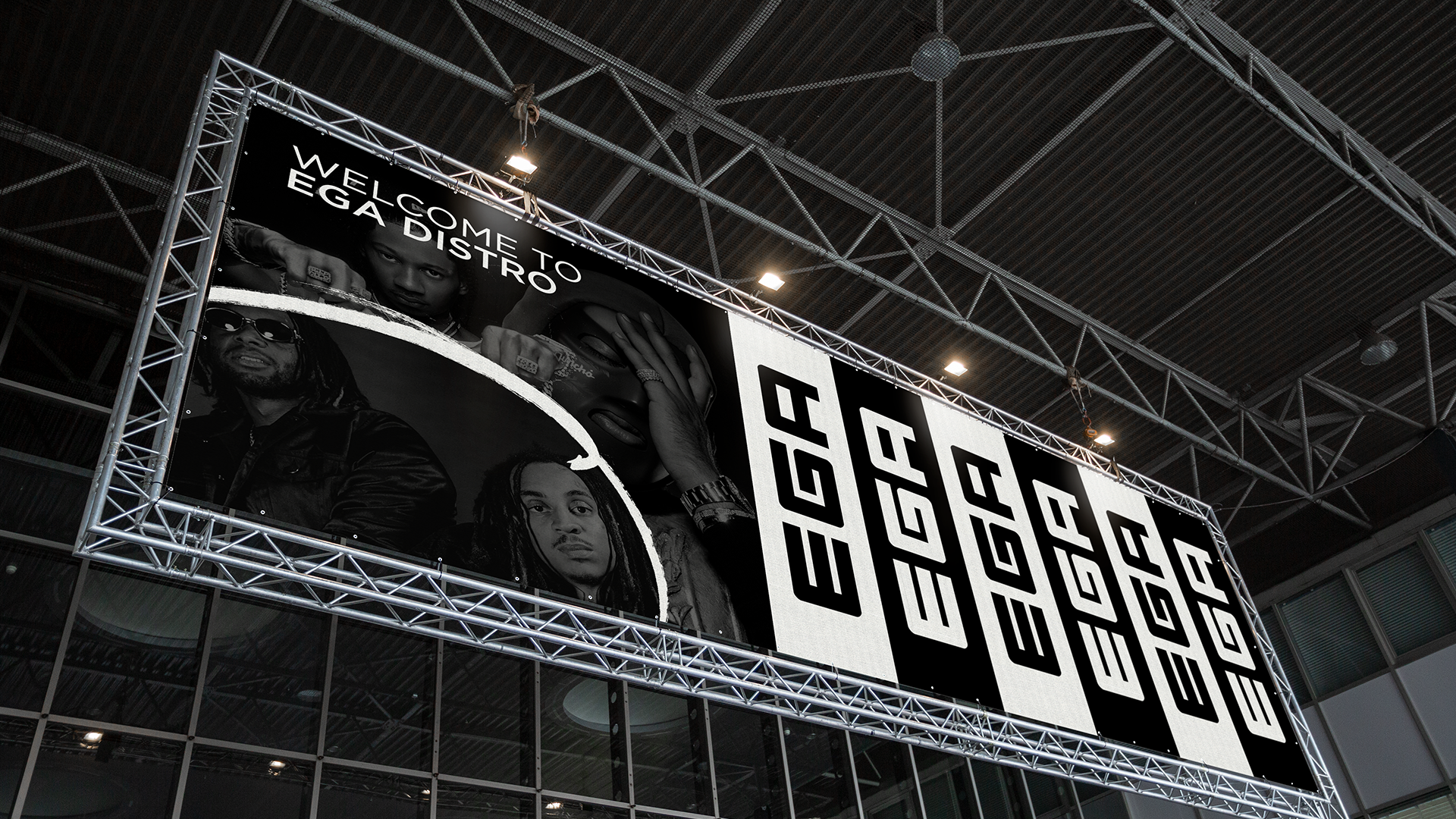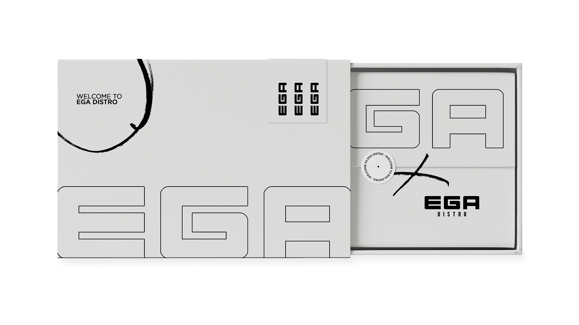 Brand identity and design assets for EGA Distro — logos, visuals and brand system across digital and print